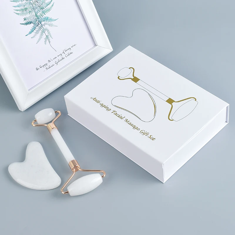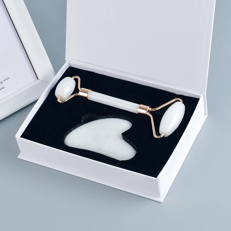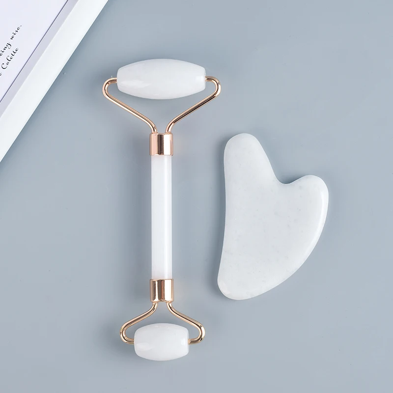 2 in 1 Jade Roller Gua Sha Massage Tool Scraping Set Face Neck Eye Slimming Anti Wrinkle Cellulite