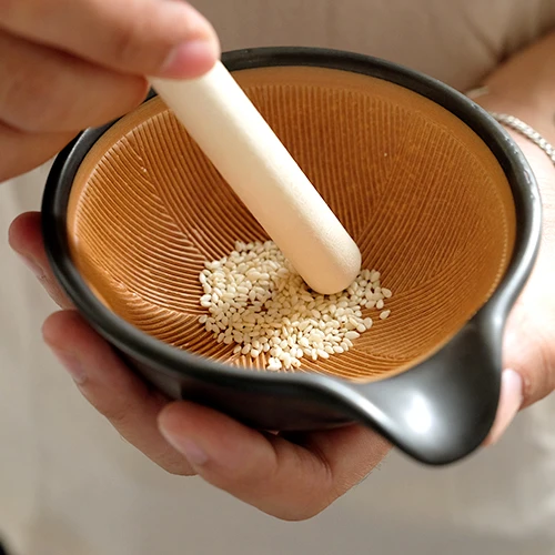 Japanese ceramic grinding bowl children grinding bowl grinding rod garlic roller pepper infant auxi